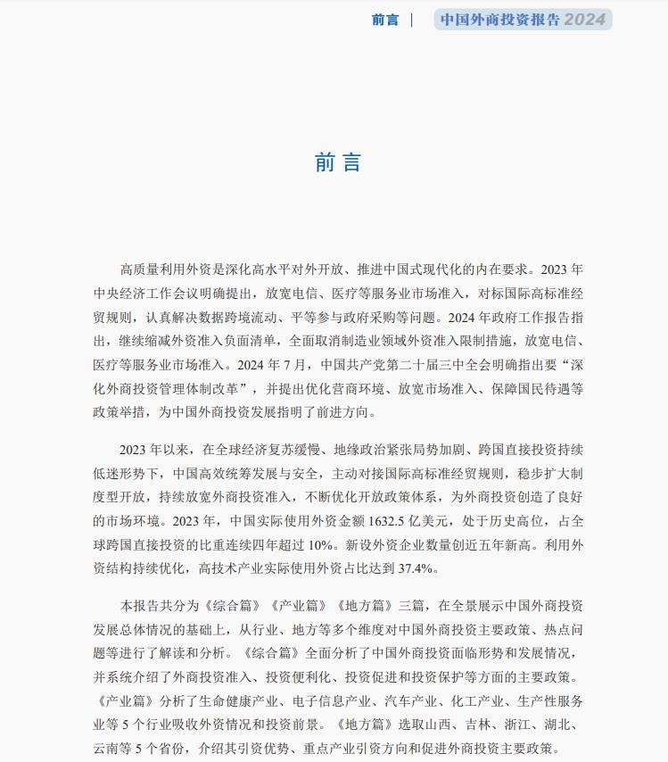 本报告从行业、地方等多个维度对中国外商投资主要政策、热点问题等进行了解读和分析。